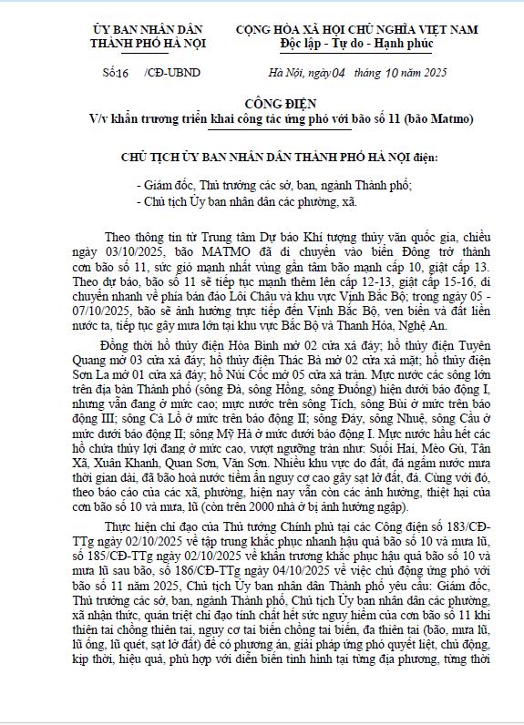 Theo thông tin mới nhất từ Trung tâm Dự báo Khí tượng Thủy văn Quốc gia, từ ngày 05 – 07/10/2025, cơn bão số 11 (Matmo) có khả năng ảnh hưởng trực tiếp đến đất liền với sức gió mạnh cấp 10–12, giật cấp 15–16.