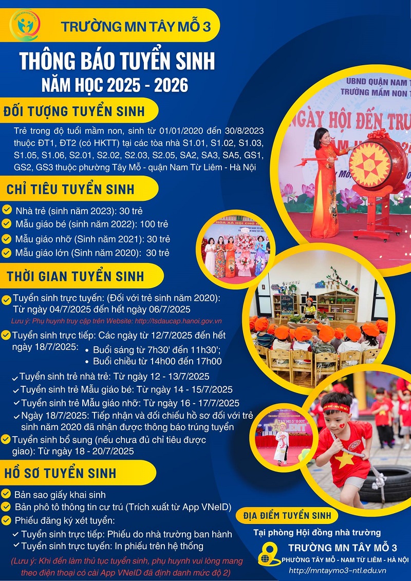 Tuyển sinh trực tuyến đối với trẻ sinh năm 2020 từ ngày 04-06/7/2025.